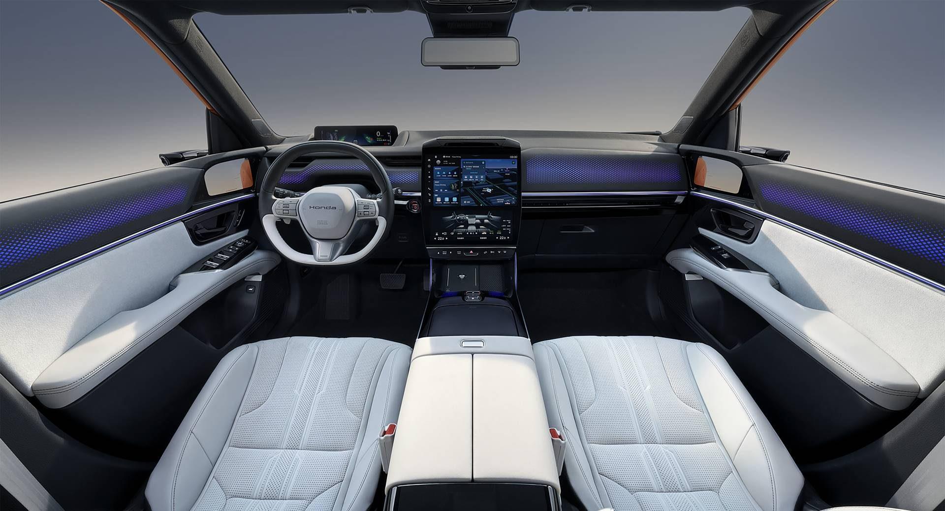 外观造型也不错,毕竟这已经是本田最新的电动汽车了,整体设计风格是低趴且宽体的造型,我们的感觉是操控性非常不错。我们驾驶下来也确实如此,操控性要媲美高价格,高级别的本田燃油车型,稳定性确实不错,也是这款新车我认为该新车最有亮点的设计。车头采用了与车尾进行呼应的贯穿式尾灯设计,侧面造型扁平化,而且是双色车身构造,是不是有点类似本田的冠道系列呢?新车已经使用上了最新的发光本田车标,看起来有点与众不同!